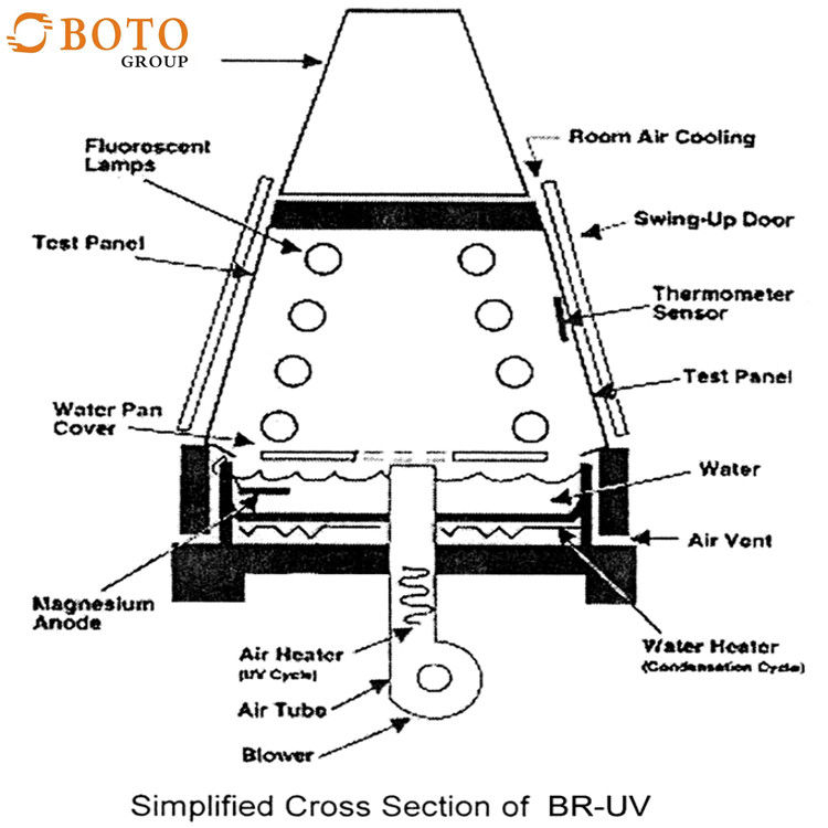 La chambre UV d'essai vieillissant simule des effets préjudiciables d'exposition extérieure à long terme de lumière du soleil, de chaleur, d'humidité sur des matériaux et de revêtements. Elle expose le spécimen aux états variables de survivre au rayonnement ultraviolet, à l'humidité et à la chaleur pour examiner la représentation et pour améliorer la qualité.